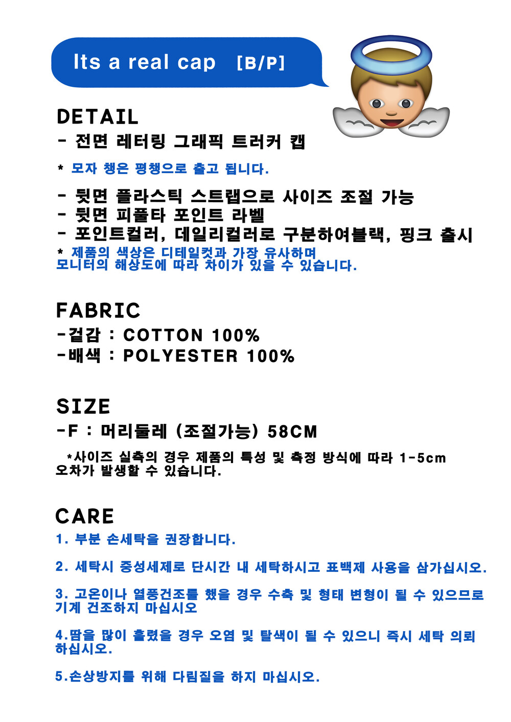 리얼캡 구매시 핀버튼은 6개 증정품으로 함께 동봉됩니다! 좋은 하루 보내세요